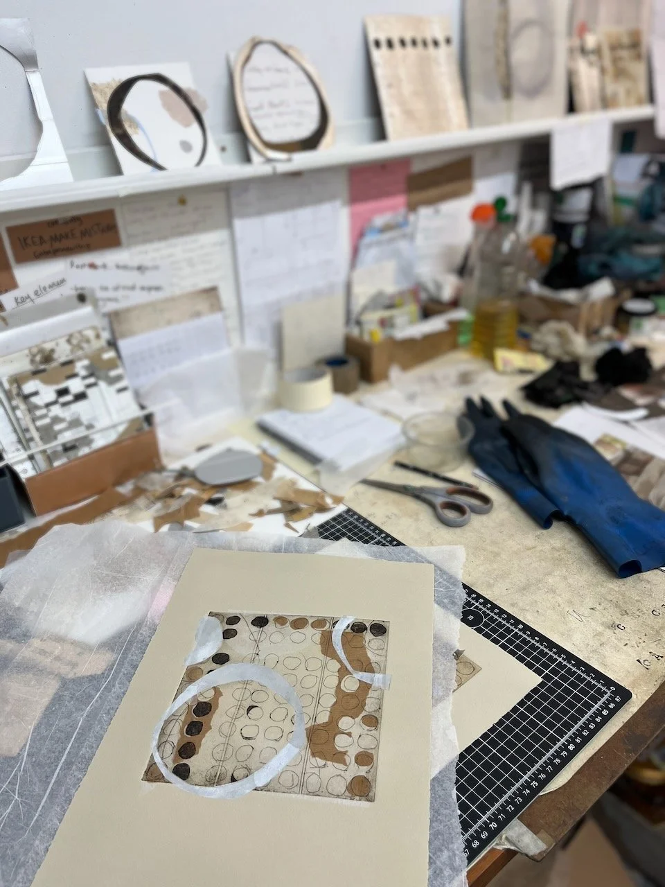 Lucy Jones - Printmaker - unique, contemporary, hand made prints - collagraph with intaglio and collage - works from her studio in Edinburgh and Edinburgh Printmakers - simple yet complex, discoveries through process, grids and layers - imperfect perfection.